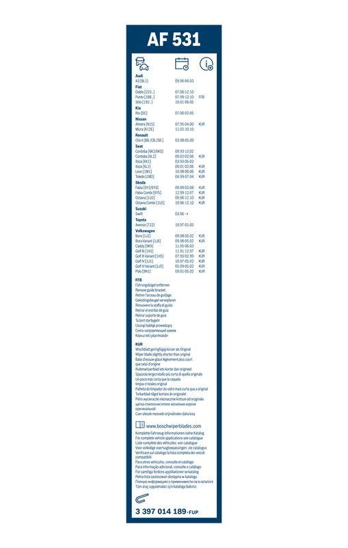 BOSCH 3 397 014 189 Wischblatt AF531 Aerofit Scheibenwischer 530/450 mm (3397014189)