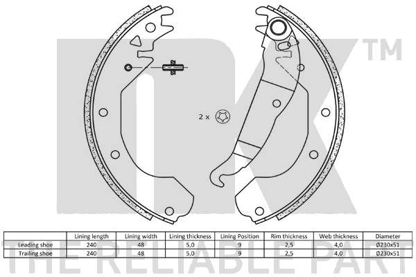 NK 2736410 Bremsbackensatz für BEDFORD, OPEL, VAUX (2736410)