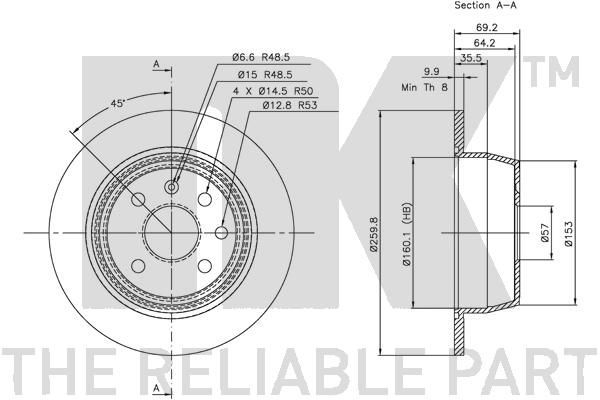NK 313618 Bremsscheibe für OPEL, VAUX (313618)