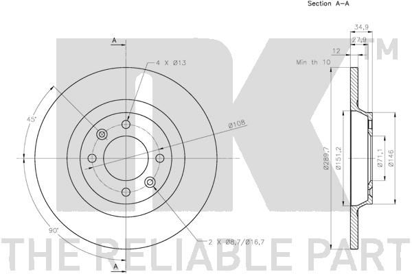 NK 313743 Bremsscheibe für CITROEN, DS, PEUGEOT (313743)