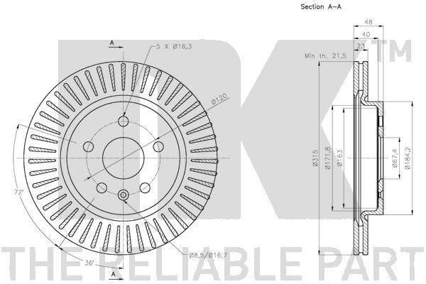 Technische Daten- Außendurchmesser [mm]: 315