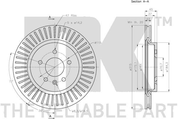 Technische Daten- Außendurchmesser [mm]: 315