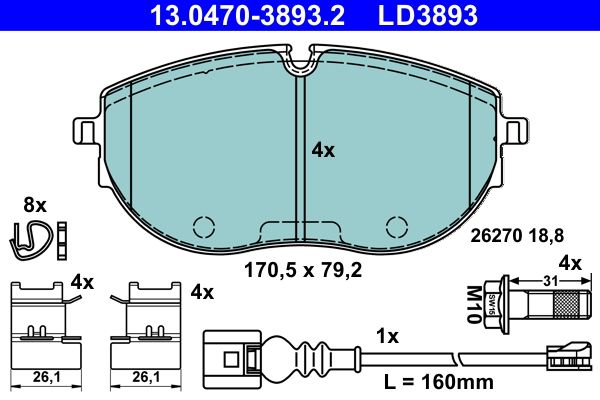 ATE 13.0470-3893.2 Ceramic Belagsatz (13.0470-3893.2)