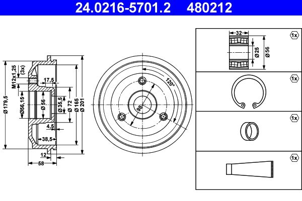 ATE 24.0216-5701.2 Bremstrommeln mit Radlager (24.0216-5701.2)